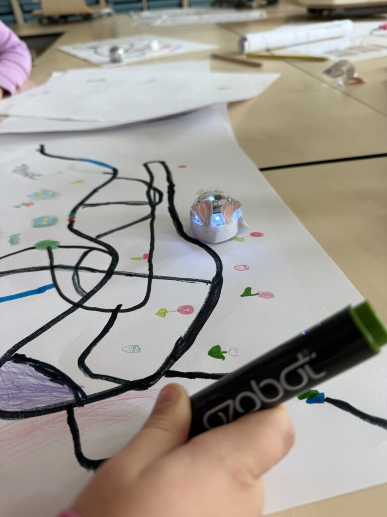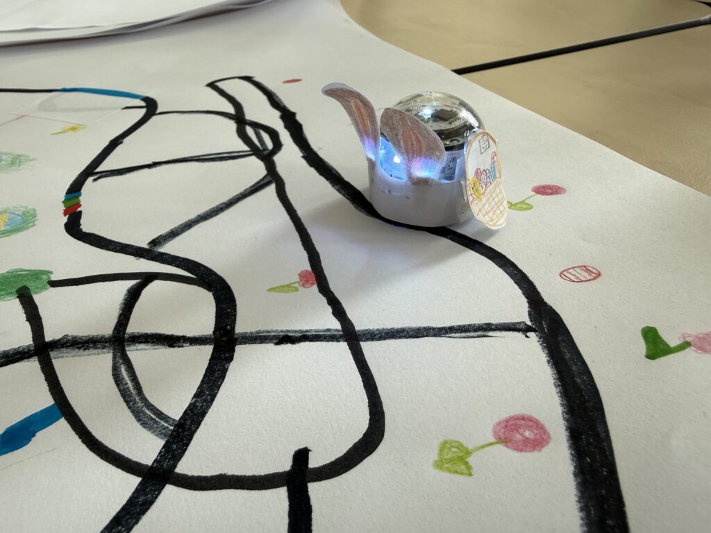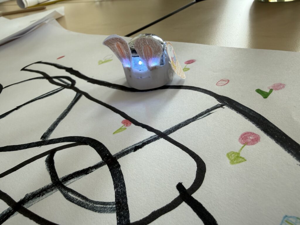 In den letzten Wochen wurde in der AG fleißig programmiert, gestaltet und ausprobiert. Passend zur Osterzeit verwandelten die Kinder ihre kleinen Ozobots in kreative Osterhasen: Mit viel Fantasie wurden die kleinen Roboter dekoriert und anschließend auf selbst gestalteten Parcours auf die Reise geschickt.